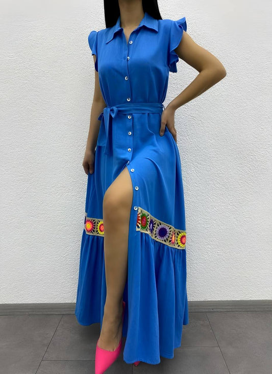 Sold outlong linen belted dress - 00006