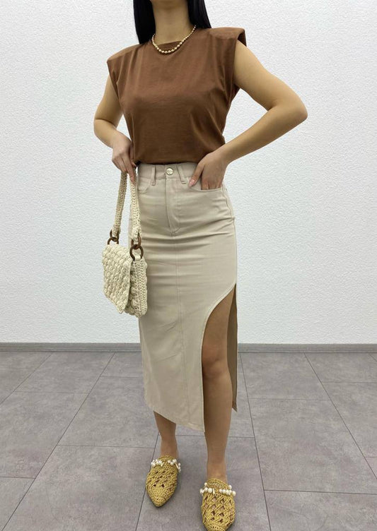 Long Denim Skirt with Side Deep Slit Detail - ET00004