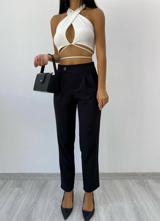 Front and Back Seam Detailed Zippered Pocket High Waist Pant - P00010