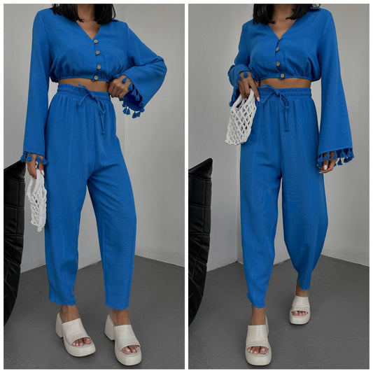 WOMEN'S BUTTON DETAIL CAPED TROUSERS SUIT - TK00051