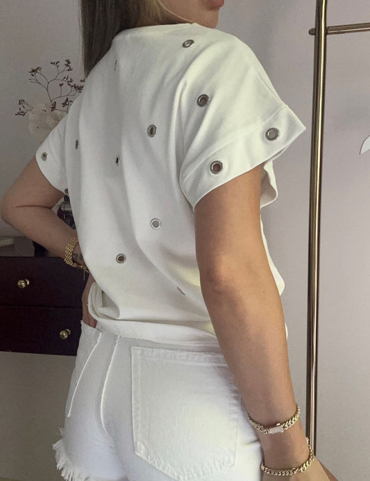 Eyelet Accessory Detailed T-shirt Ecru - TS00004