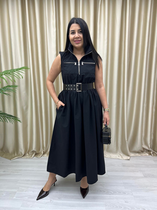 Elegant Sleevelesetric Butts Maxi Dress with Asymmon Detail - 00157