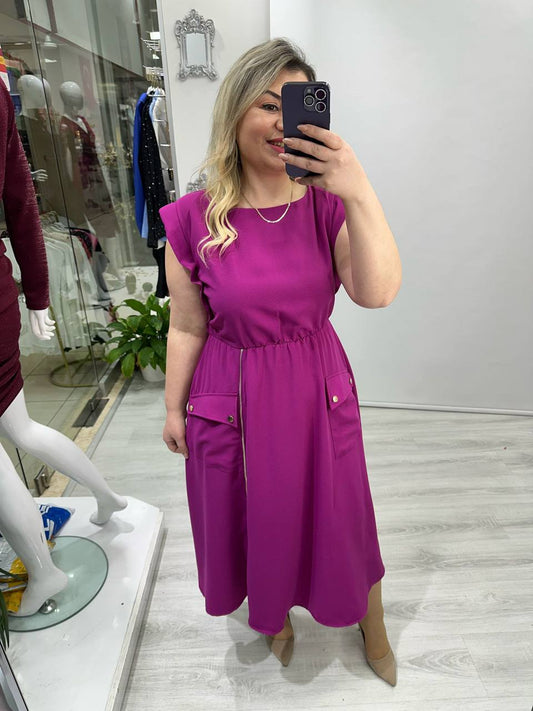 Elegant Pocket Midi Dress – 4 Colors - 00131