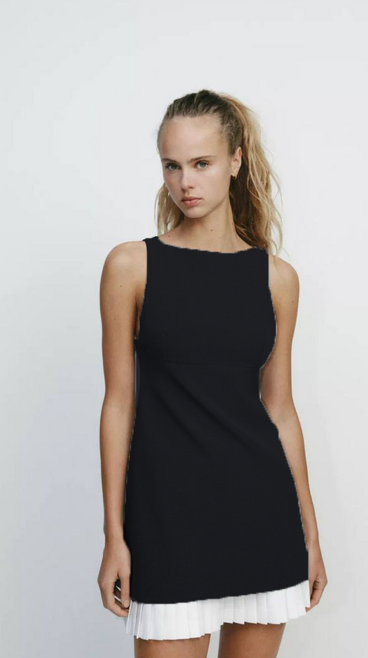 Modern Elegance Sleeveless Mini Dress – Black & Silver - 00133