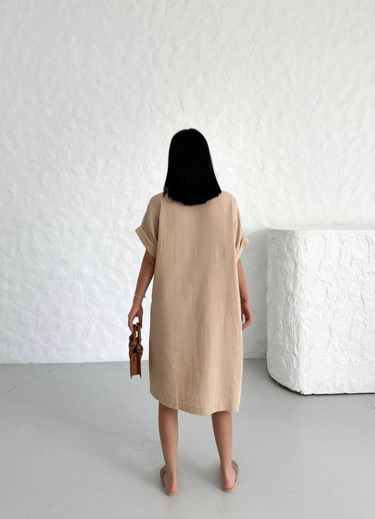 Muslin Short Dress with Front Pockets - 00127