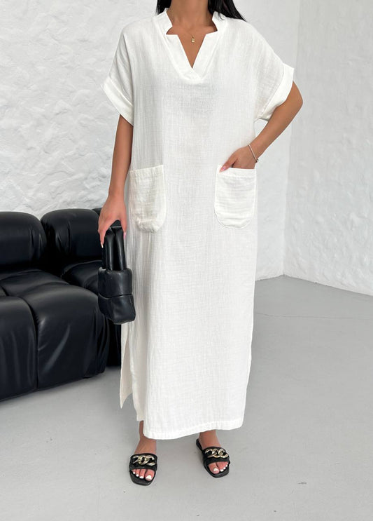 Muslin Linen Pocket Dress - 00129