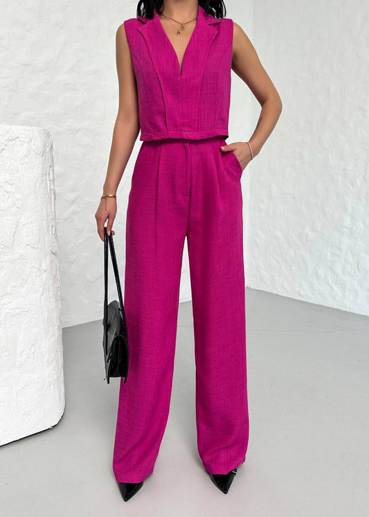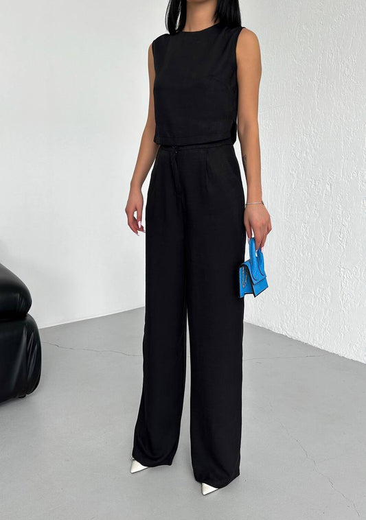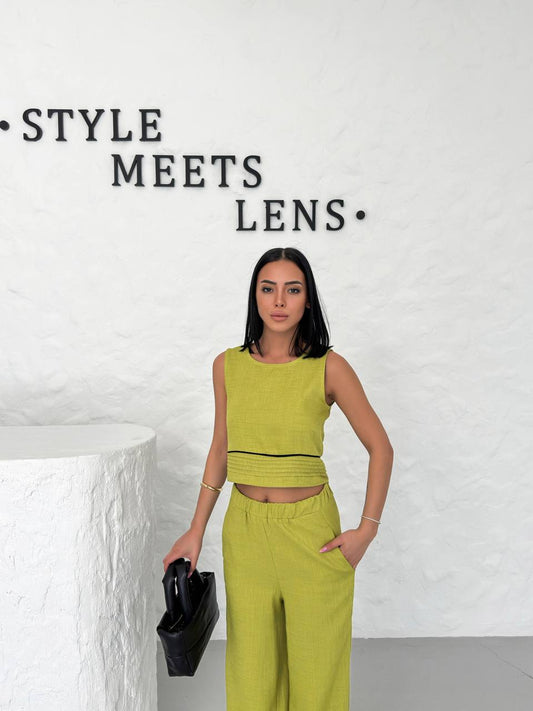moda Linen Sleeveless Crop Pants Set - TK00063